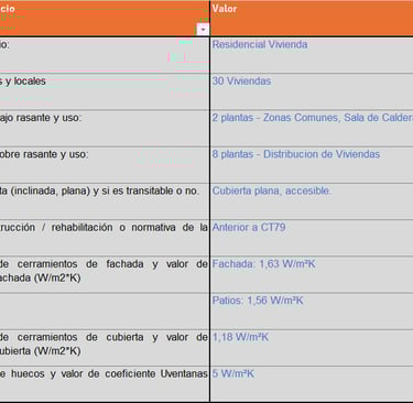 En la tabla adjunta se referencian las características del edificio, y una breve descripción del mismo.