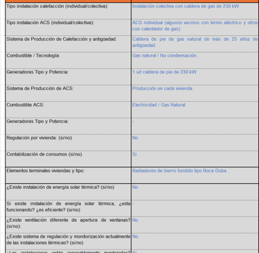 Cada edificio es un diferente, y nos encontramos una alta variabilidad. Esta claro que la mayor parte del parte del parque inmobiliario a rehabilitar es anterior al 1979 donde contemplamos la primera normativa que nos empezaba a exigir ya términos de aislamiento (aunque fuese muy pobre). Nos encontramos con innumerables edificios que no están aislados, en la mayor parte de los casos solamente se han sustituido ventanas, y el 95% disponen de sistemas de calefacción central con radiadores y distribución por columnas.