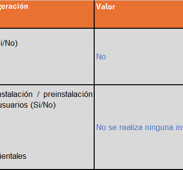 En la tabla, contemplamos la viabilidad y la necesidad de adopción de medidas necesarias para implantar los equipos físicamente en su lugar de ubicación.