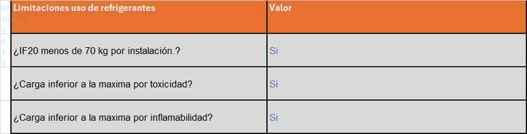 Hay que tener en cuenta, en base a los requerimientos del RSIF la carga máxima de refrigerante por instalación, así como las cargas máximas por toxicidad y por inflamabilidad que nos especifica el actual reglamento.