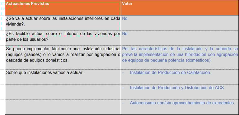 Dentro de las posibilidades arquitectónicas, y las medidas que se pretenden implantar no siempre se atiende la mejora de los cerramientos (no en todas las rehabilitaciones energéticas se realiza aislamiento aunque si es lo deseable). En el proyecto de instalaciones térmicas nos centramos en el diseño y valoración de las actuaciones en los sistemas de Calefacción y de Agua Caliente Sanitaria, así como la implantación de un sistema de Autoconsumo (instalación de Fotovoltaica).